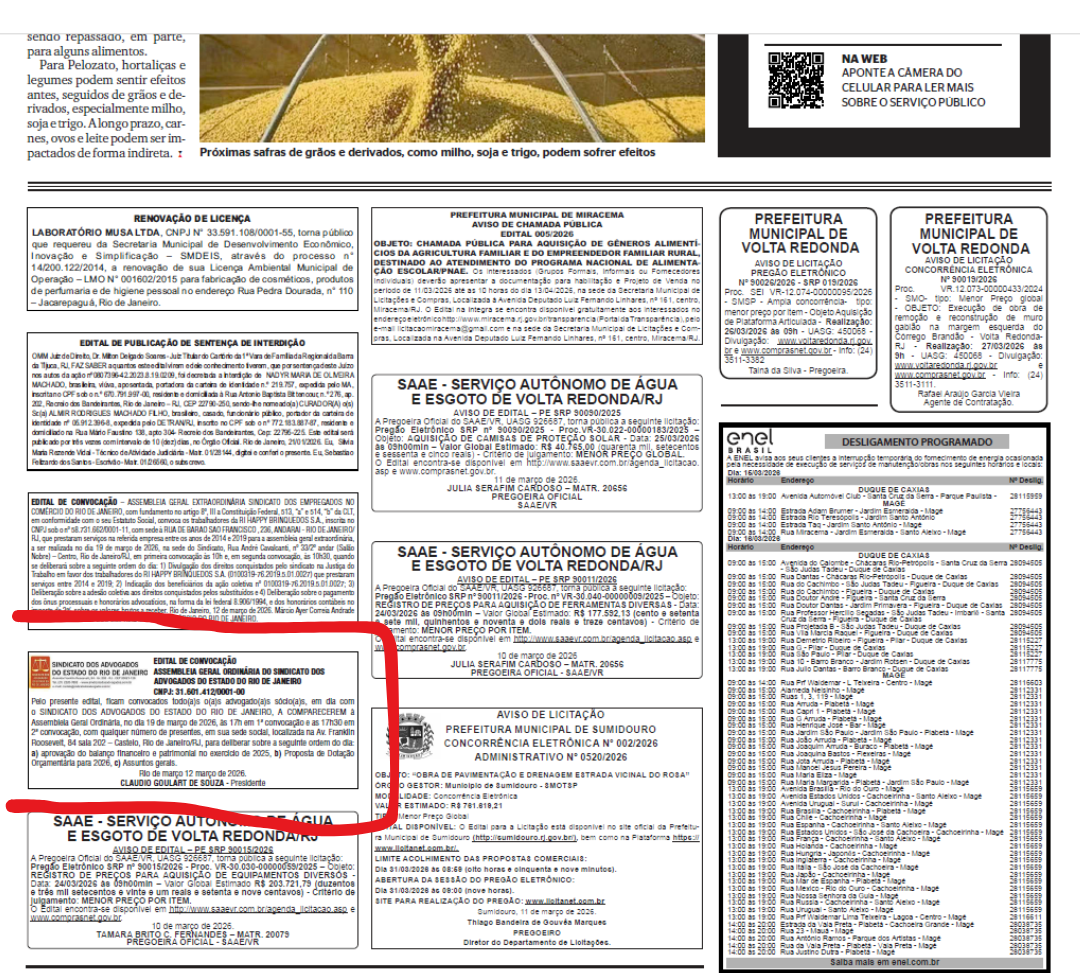 Edital da convocação da assembleia do SAERJ dia 19/03, publico à página 11, da edição do jornal Extra